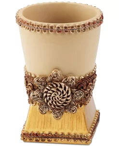 Effortlessly elevate your bathroom’s accessories with the elegant braided-medallion trim and polished tones of this stylish tumbler from Avanti.
