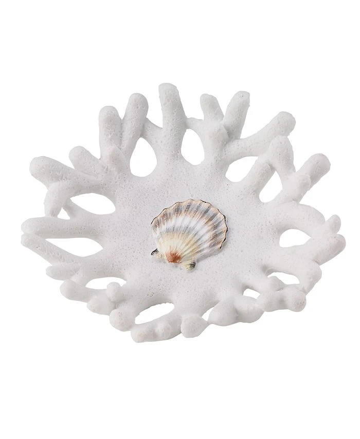 The Avanti Destin Soap Dish features an intricately detailed seahorse, coral, shell and rope design on a white ground. Hand-painted and crafted in durable resin.