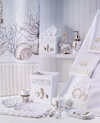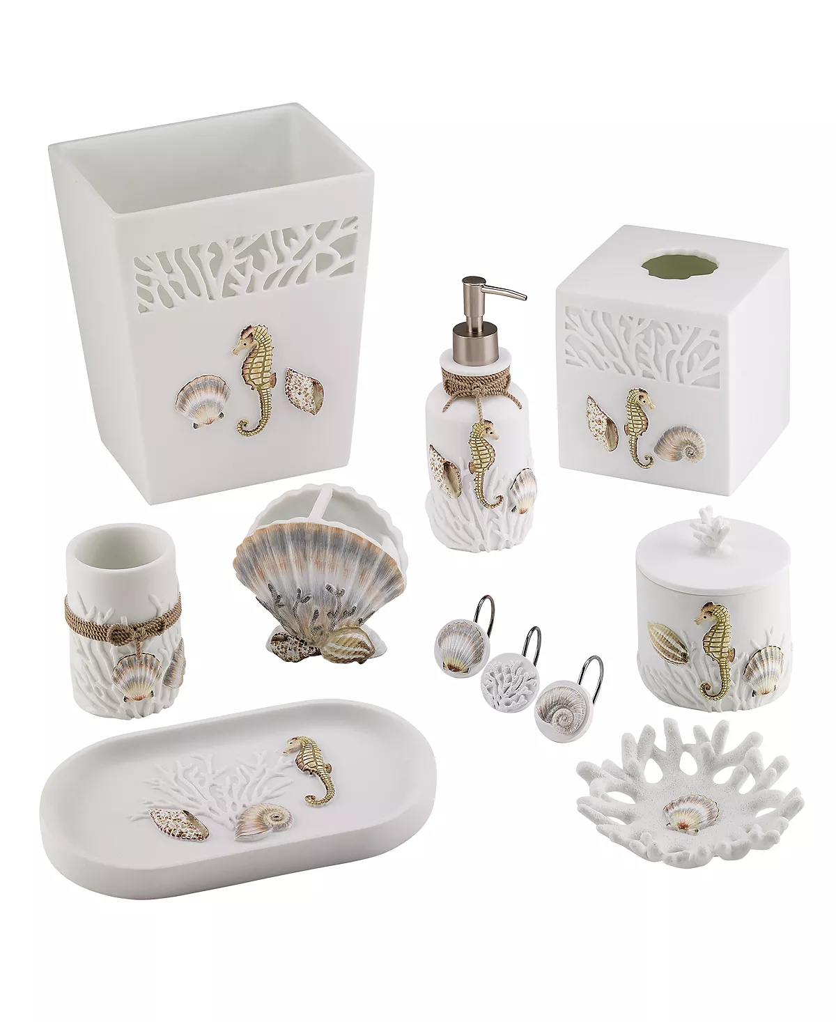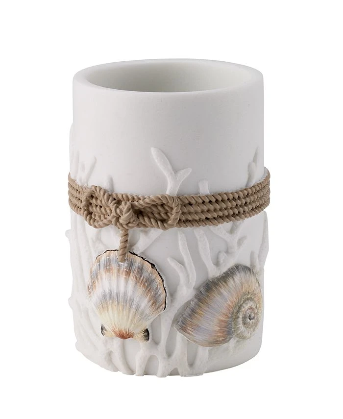 The Avanti Destin Tumbler features an intricately detailed coral, shell and rope design on a white ground. Hand-painted and crafted in durable resin.