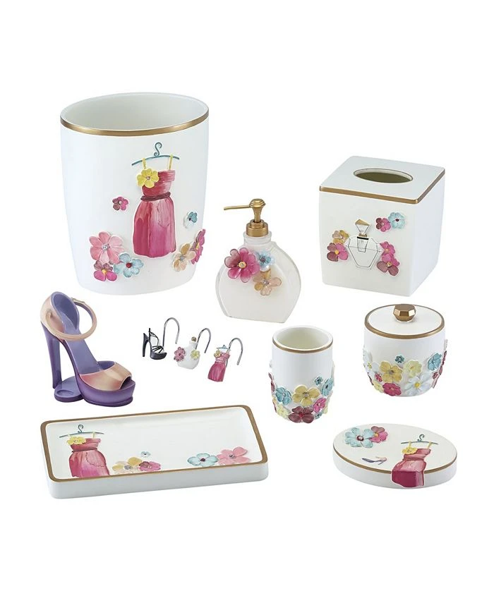 The Avanti Dream Big Collection features an ivory body with colorful flowers wrapping around its lower half. Sparkly crystals adds a touch of bling and a matte gold- tone border on the top is the perfect finishing touch. Coordinating shower curtain, rug and towels also available.