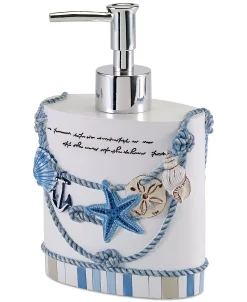 Refresh your bathroom’s decor with the seaside charm of this Island View lotion pump from Avanti, featuring a sculpted nautical motif rendered in soothing tones.
