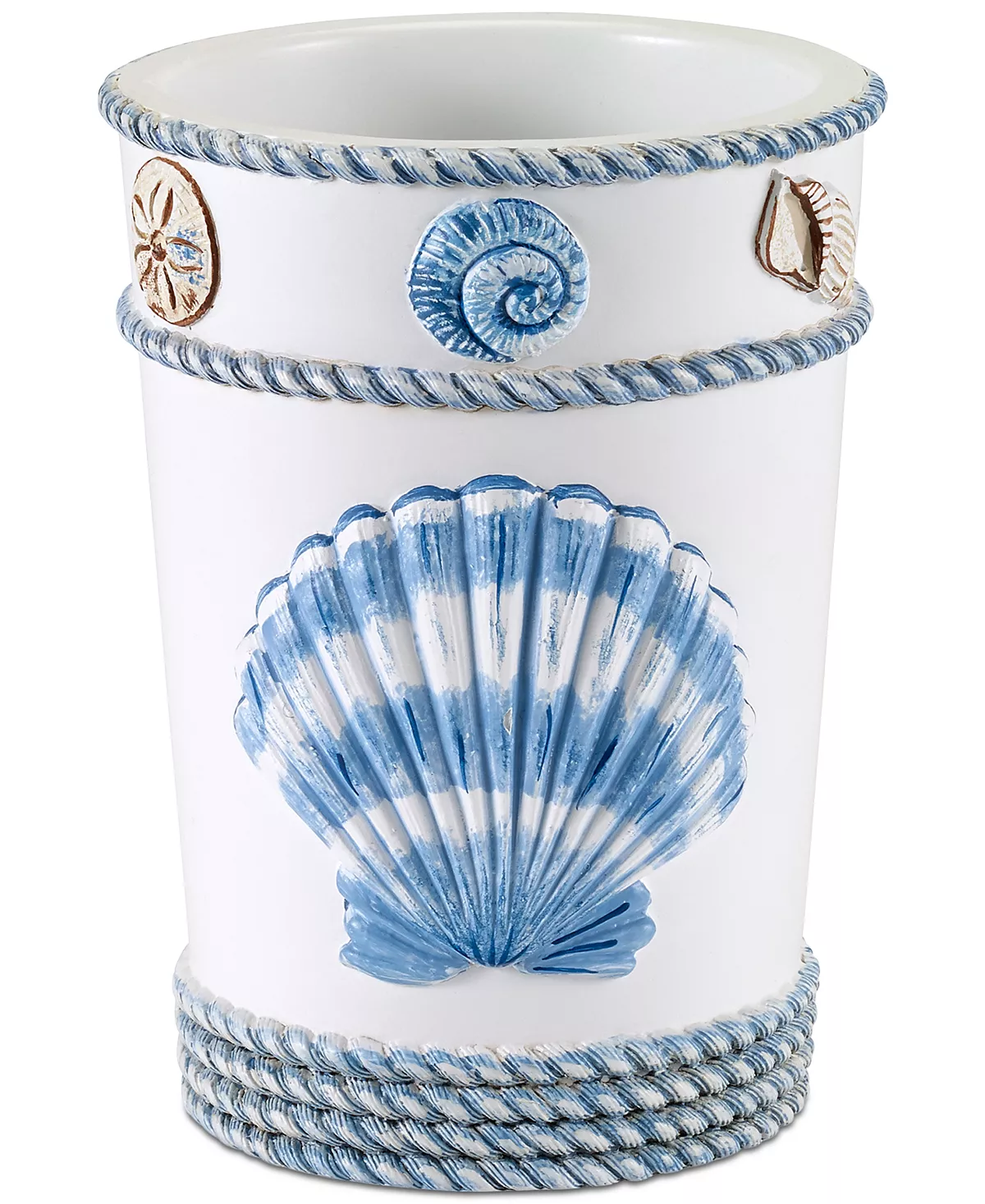 Refresh your bathroom’s decor with the seaside charm of this Island View tumbler from Avanti, featuring a sculpted nautical motif rendered in soothing tones.