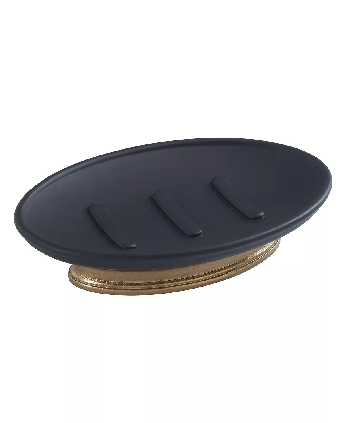 The Avanti Memphis Soap Dish delivers a smooth matte black finish with beveled industrial accents in vintage gold metallic. Crafted in durable resin for long life. Full coordinating bath accessory collection is available.