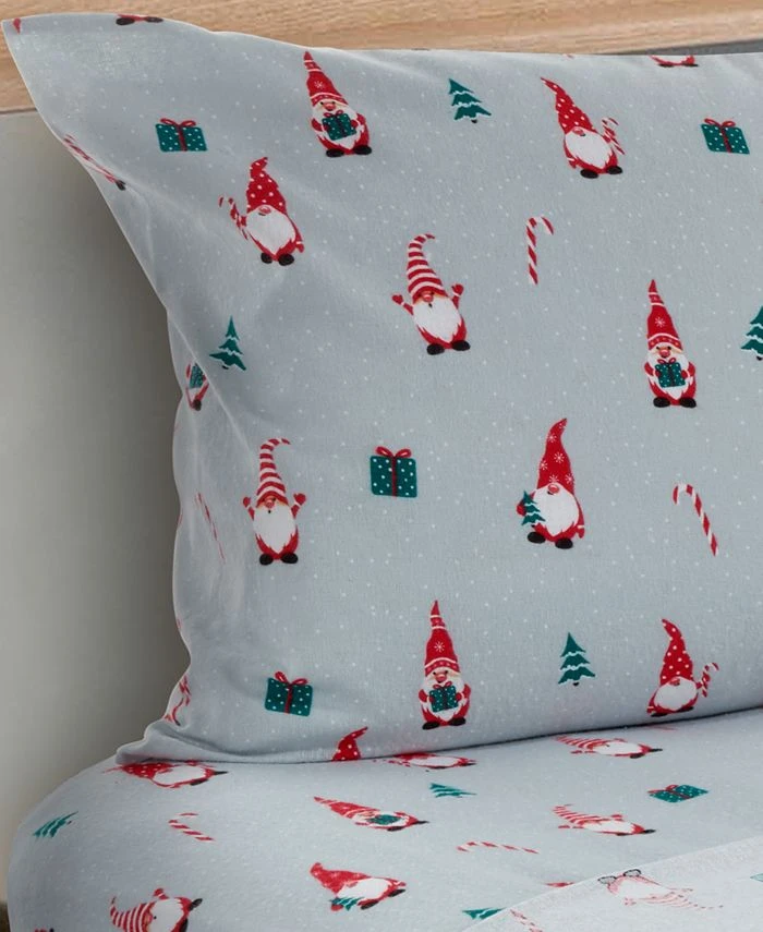 The Avanti twin flannel sheet set features a variety of snow-covered pine trees in various shades of green printed on a cream ground. The flannel is brushed 3 times for extra cozy softness.