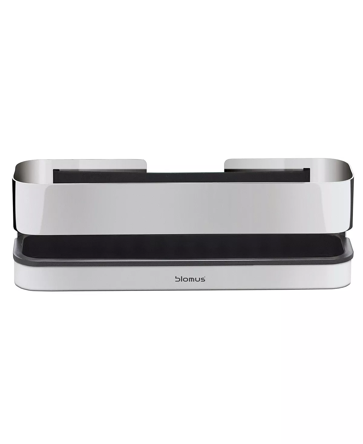 blomus Modern Stainless Steel Shower Shelf – Small -Polished provides storage and organization to the bath or shower. Even perfect for outdoor showers. Elastic bank inside the basket holds smaller items, such as razors, in place.