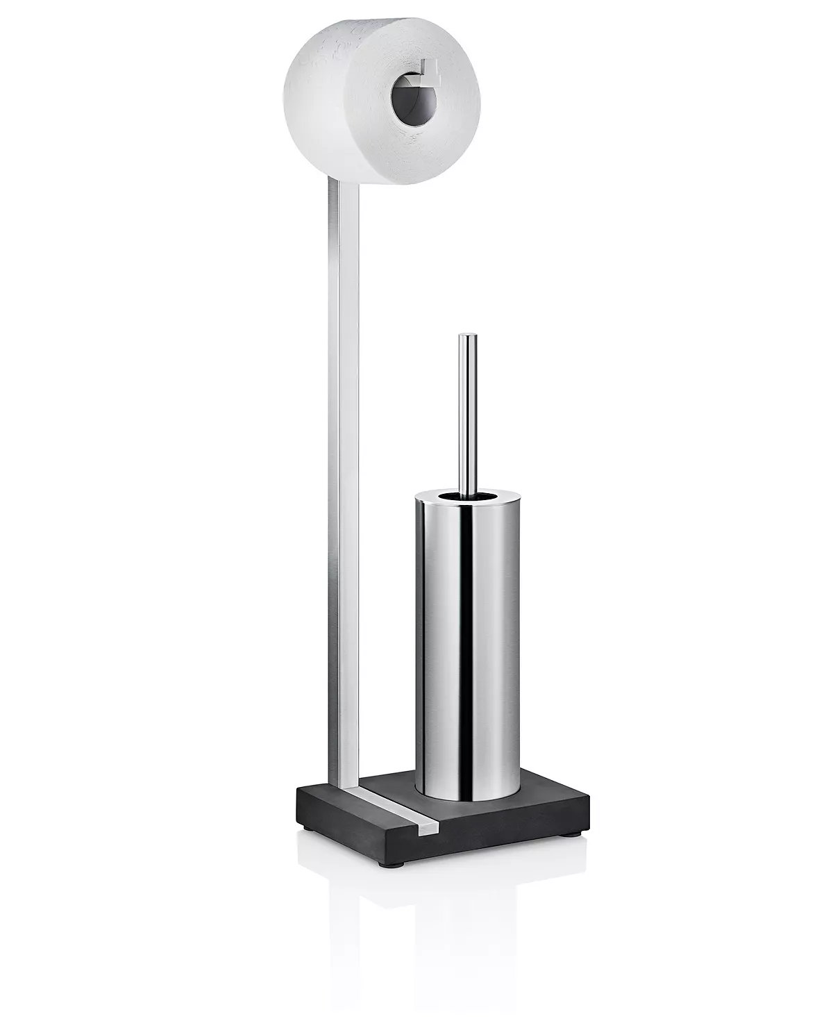 blomus Toilet Butler – toilet paper holder and tall toilet brush organization station. Accommodates 1 roll of tissue paper as well as built in toilet brush with holder. Base is made of polystone which provides both a stylish look and support.