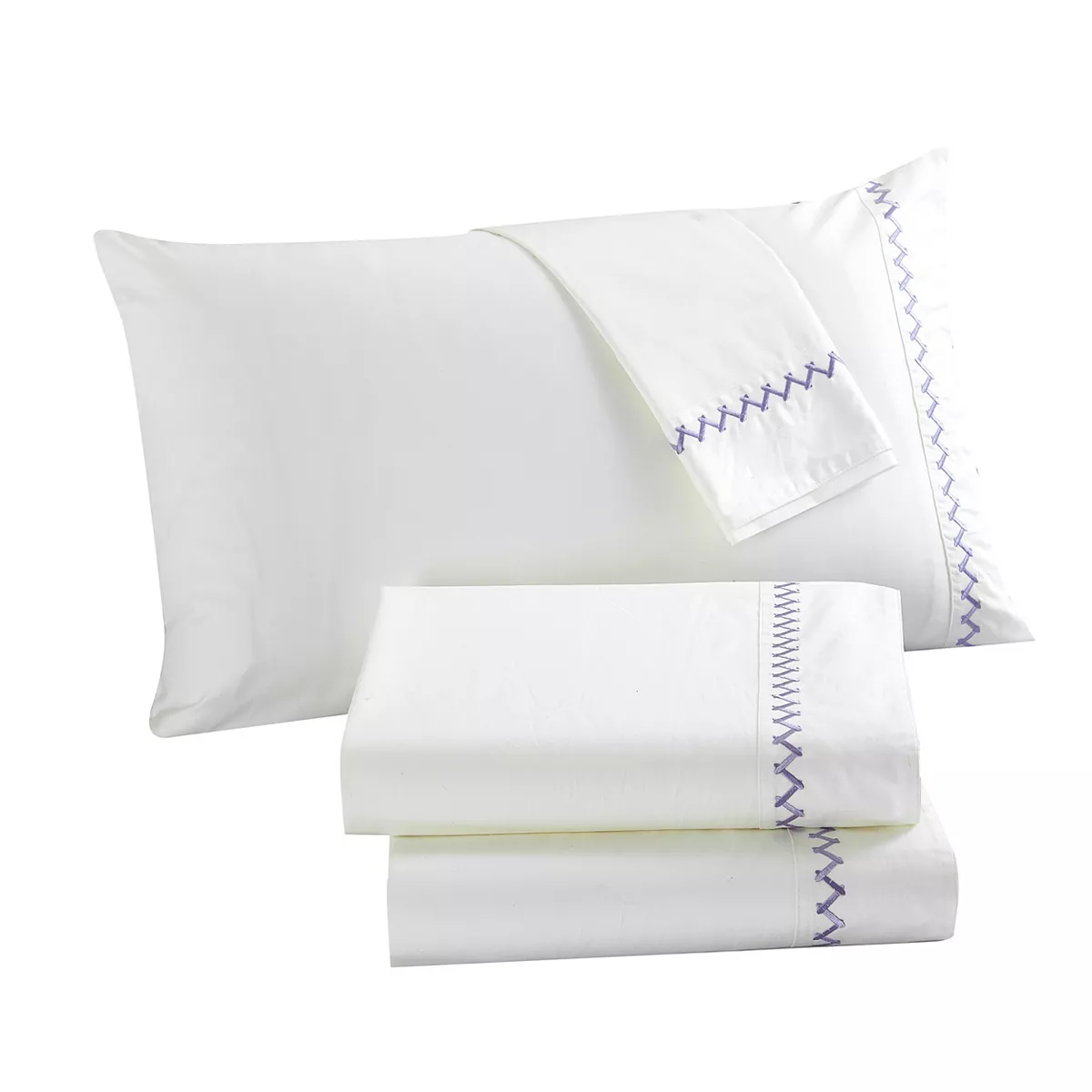 - 1 pc Flat Sheet – 92″W x 108″D , 1 pc Fitted Sheet – 60″W x 80″ + 16″D , 2 pcs Pillow Cases – 20″W x 30″D