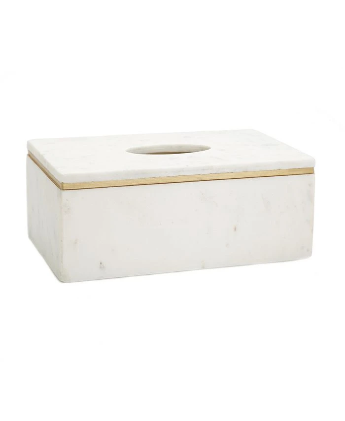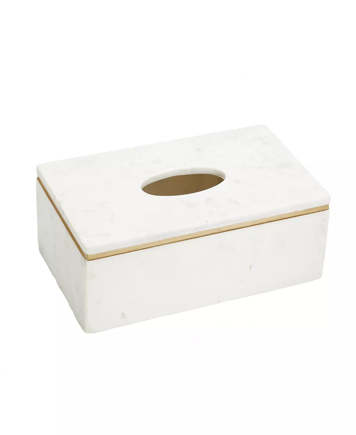 Display your tissues on the vanity stylish yet elegant. This white tissue box holder with it is gold-tone design will hold and display your tissues while looking effortlessly gorgeous. It is classic design will add a charming touch to any table it is placed on.
