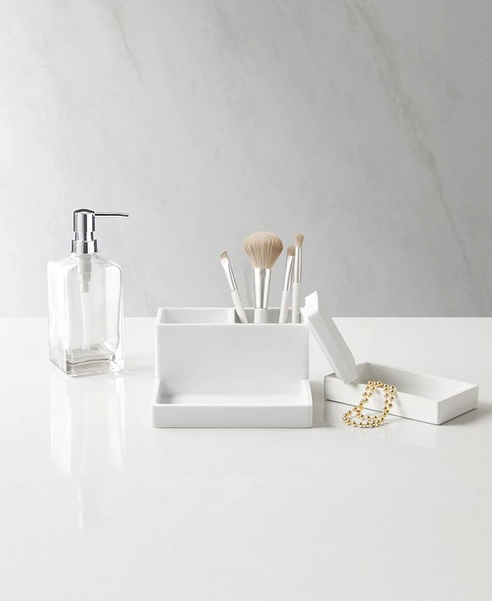 - All in One set includes lotion pump, ceramic tray and holder for toothbrush or make up