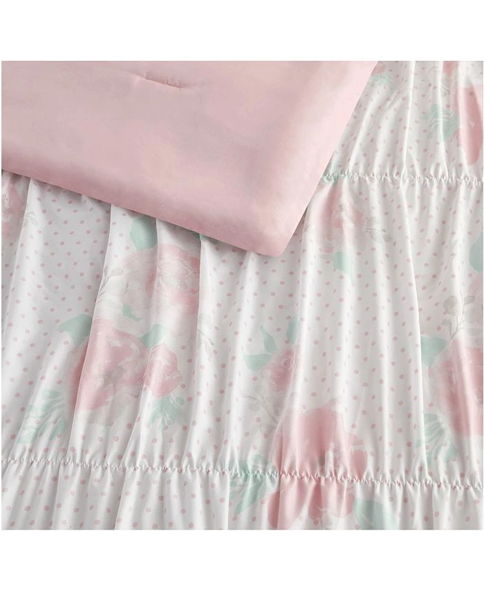 Visually stunning, the Tabitha textured comforter set by Madison Parker will add a beautiful focal point to any bedroom. The watercolor floral and polka dot pattern is colored in soft shades of pink and aqua on a white ground.