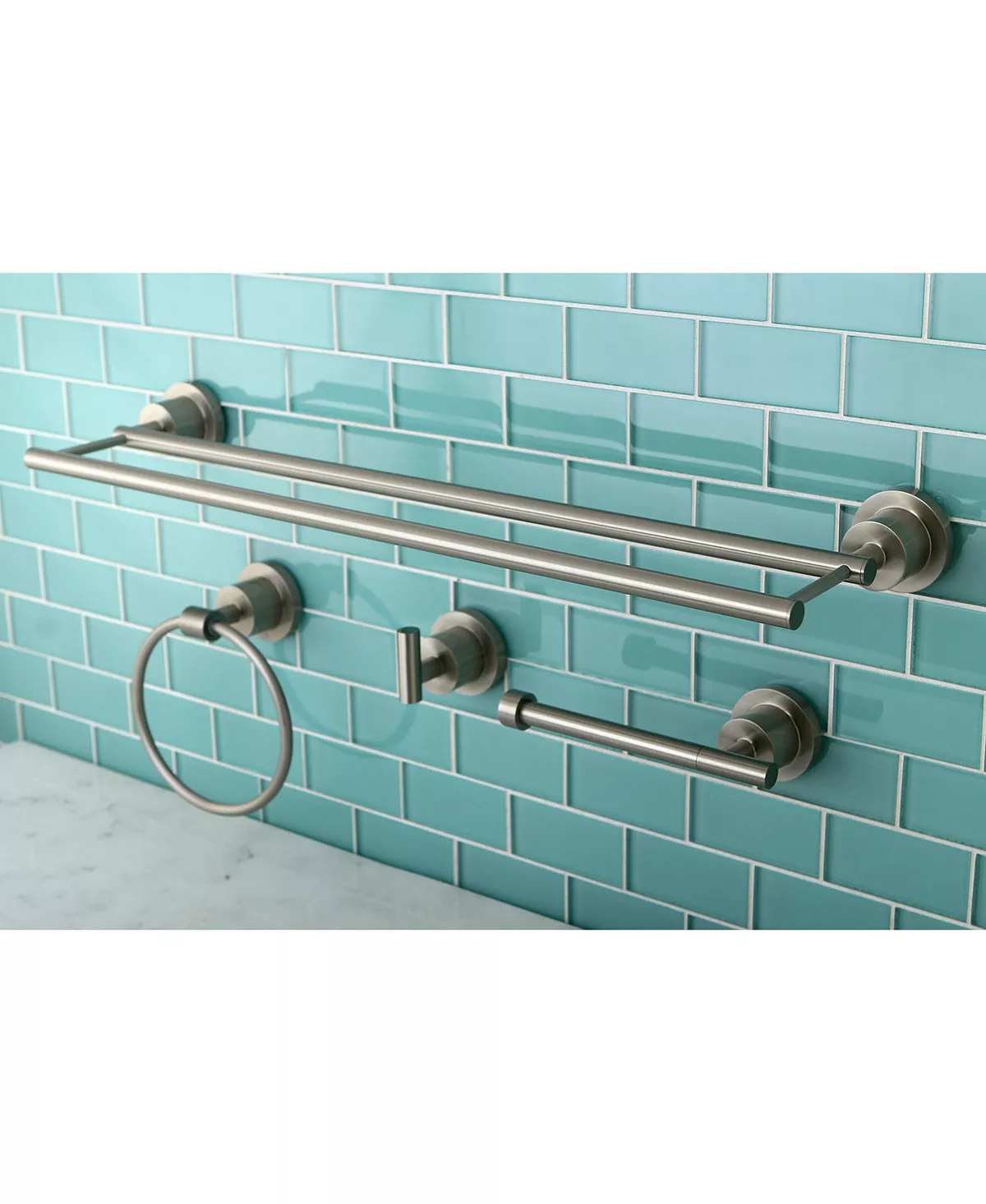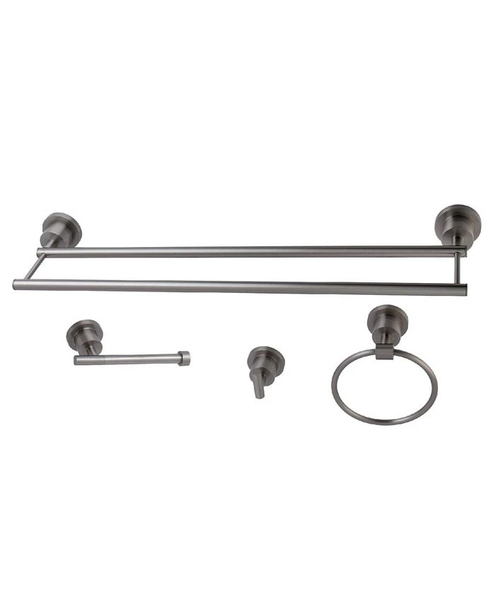 This all inclusive set of bathroom accessories features intricate detailing for a luxurious and astonishing style. One dual towel bar, towel ring, robe hook, and a toilet paper holder are included for all of your hanging storage needs.