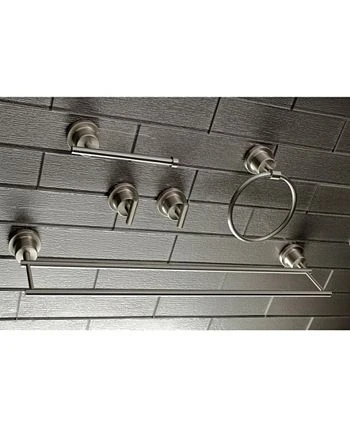 This all inclusive set of bathroom accessories features intricate detailing for a luxurious and astonishing style. One dual towel bar, towel ring, two robe hooks, and a toilet paper holder are included for all of your hanging storage needs.
