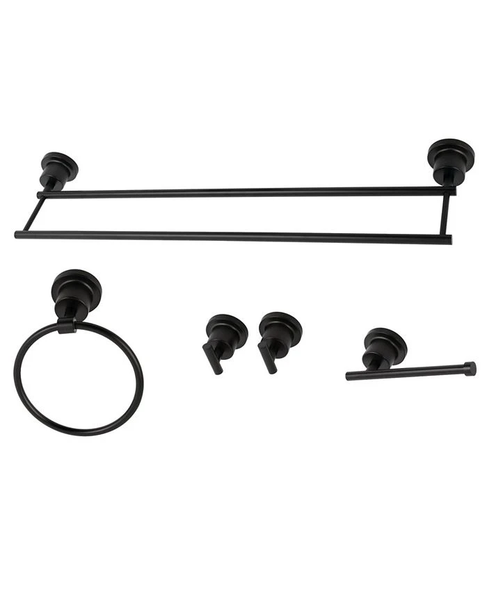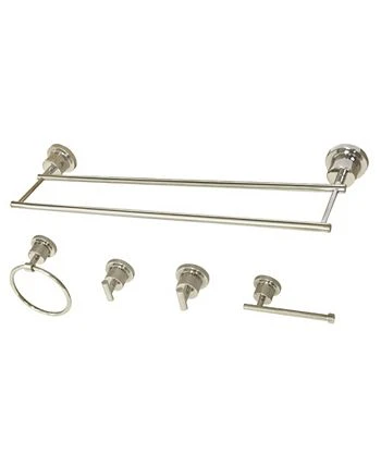 This all inclusive set of bathroom accessories features intricate detailing for a luxurious and astonishing style. One dual towel bar, towel ring, two robe hooks, and a toilet paper holder are included for all of your hanging storage needs.