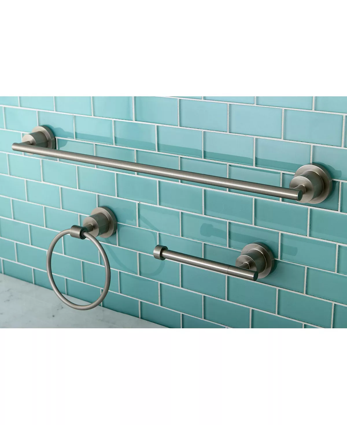 - Includes Matching Towel Bar and Toilet Paper Holder