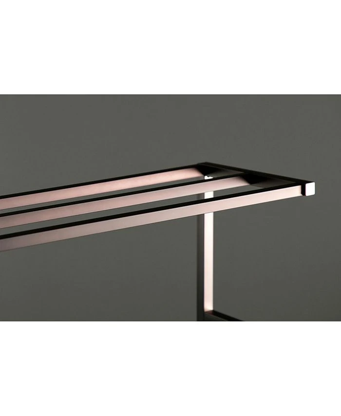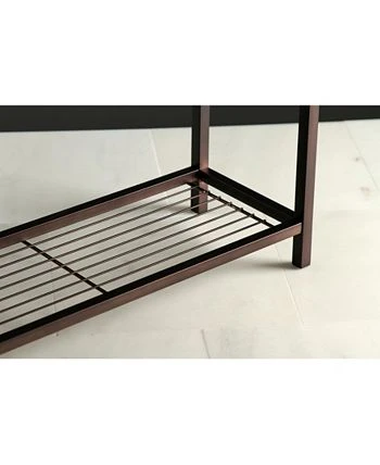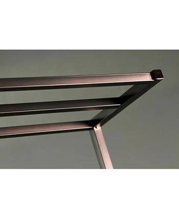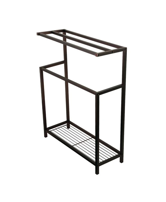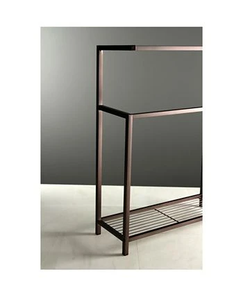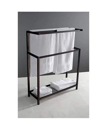 This Iron Frame Towel Rack is stylish yet functional. The 3-tiers plus one additional level provide enough room to hang hand and bath towels from and the included shelf acts as an additional storage area for additional bathroom accessories. With a large base, the towel rack is built to be sturdy.