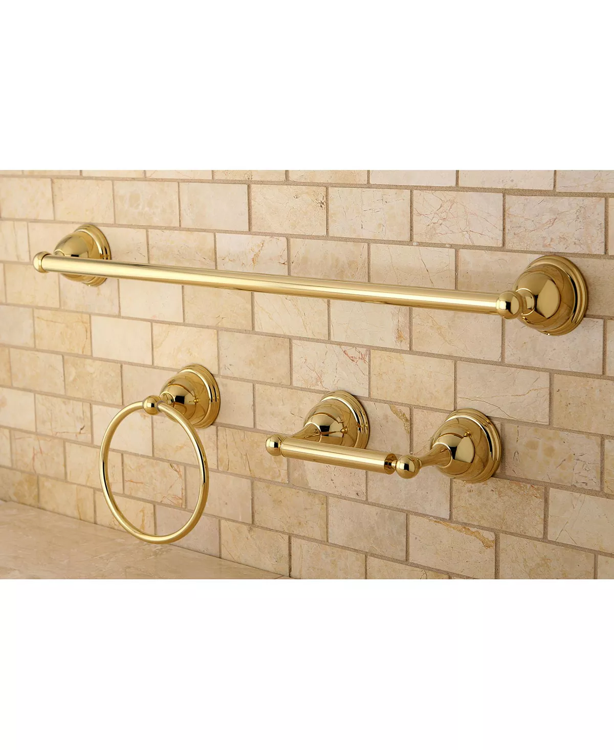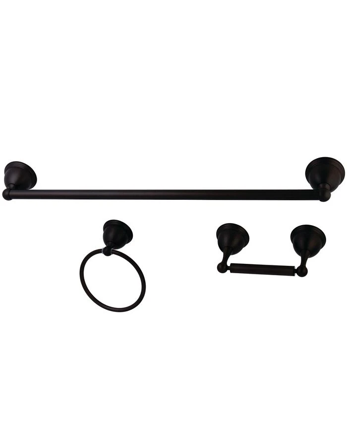 - 3 Piece Set Includes: 24″ Towel Bar, Towel Ring, Toilet Paper Holder