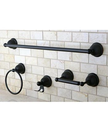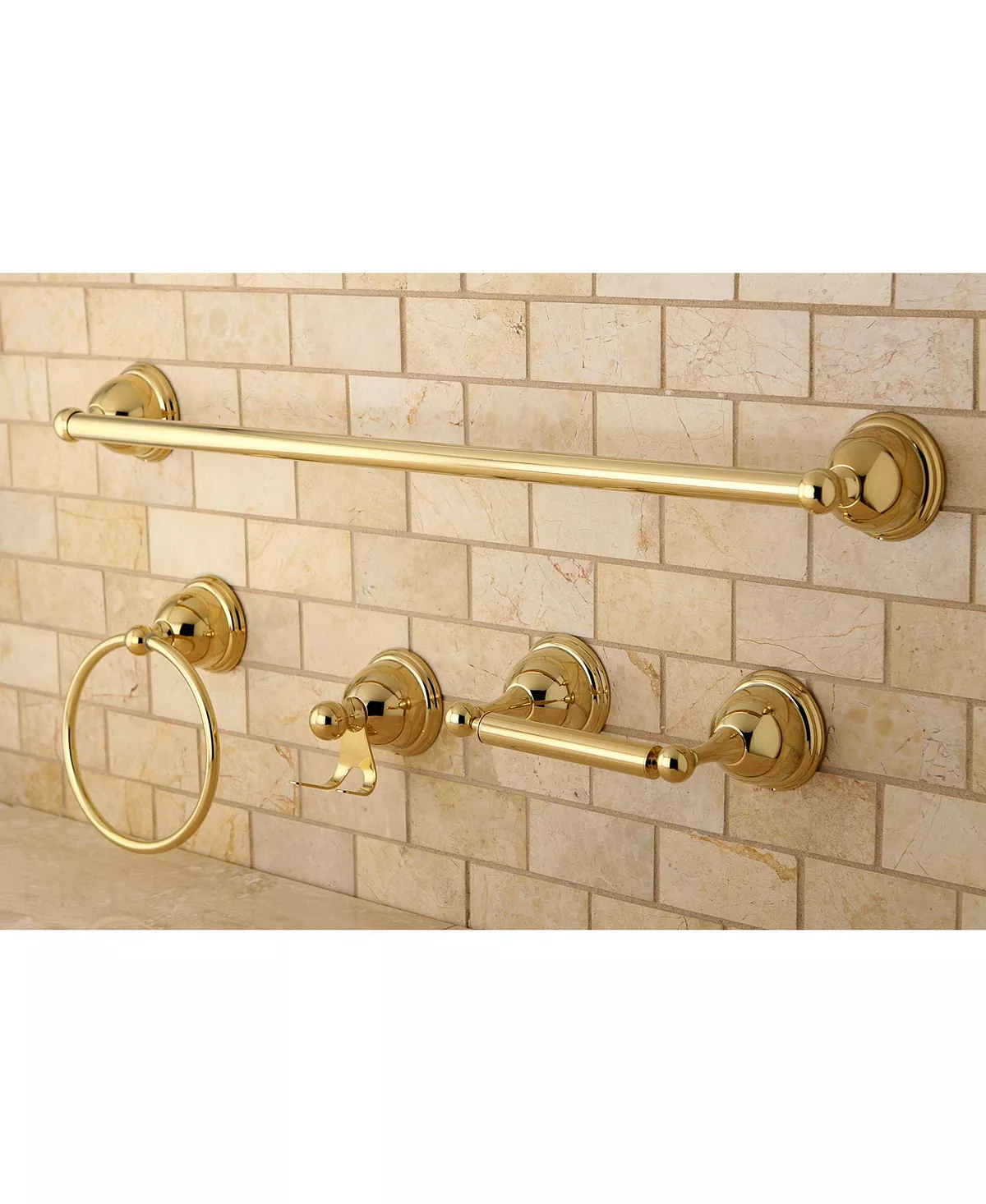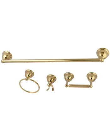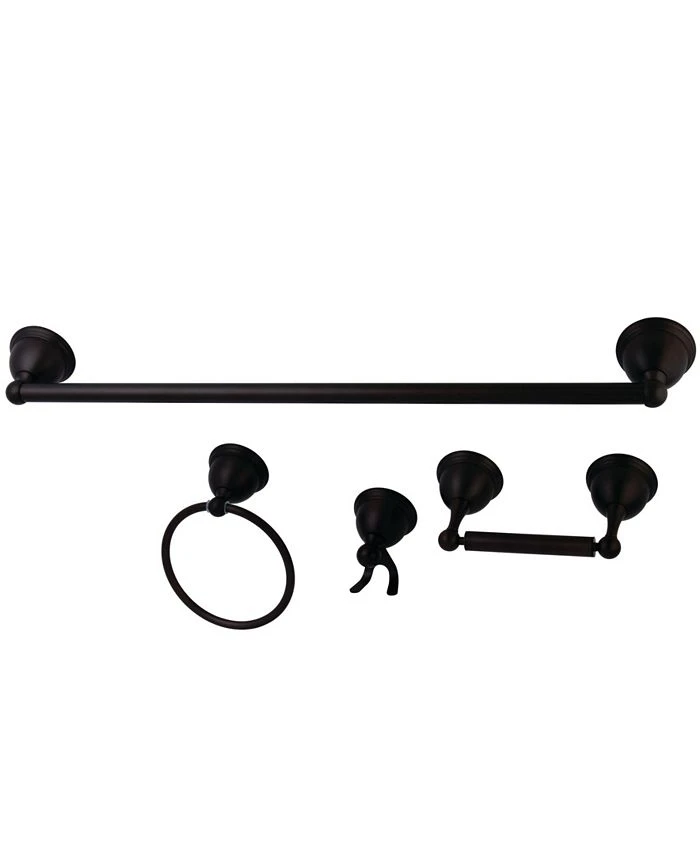 - 4 Piece Set Includes: 24″ Towel Bar, Towel Ring, Robe Hook, Toilet Paper Holder