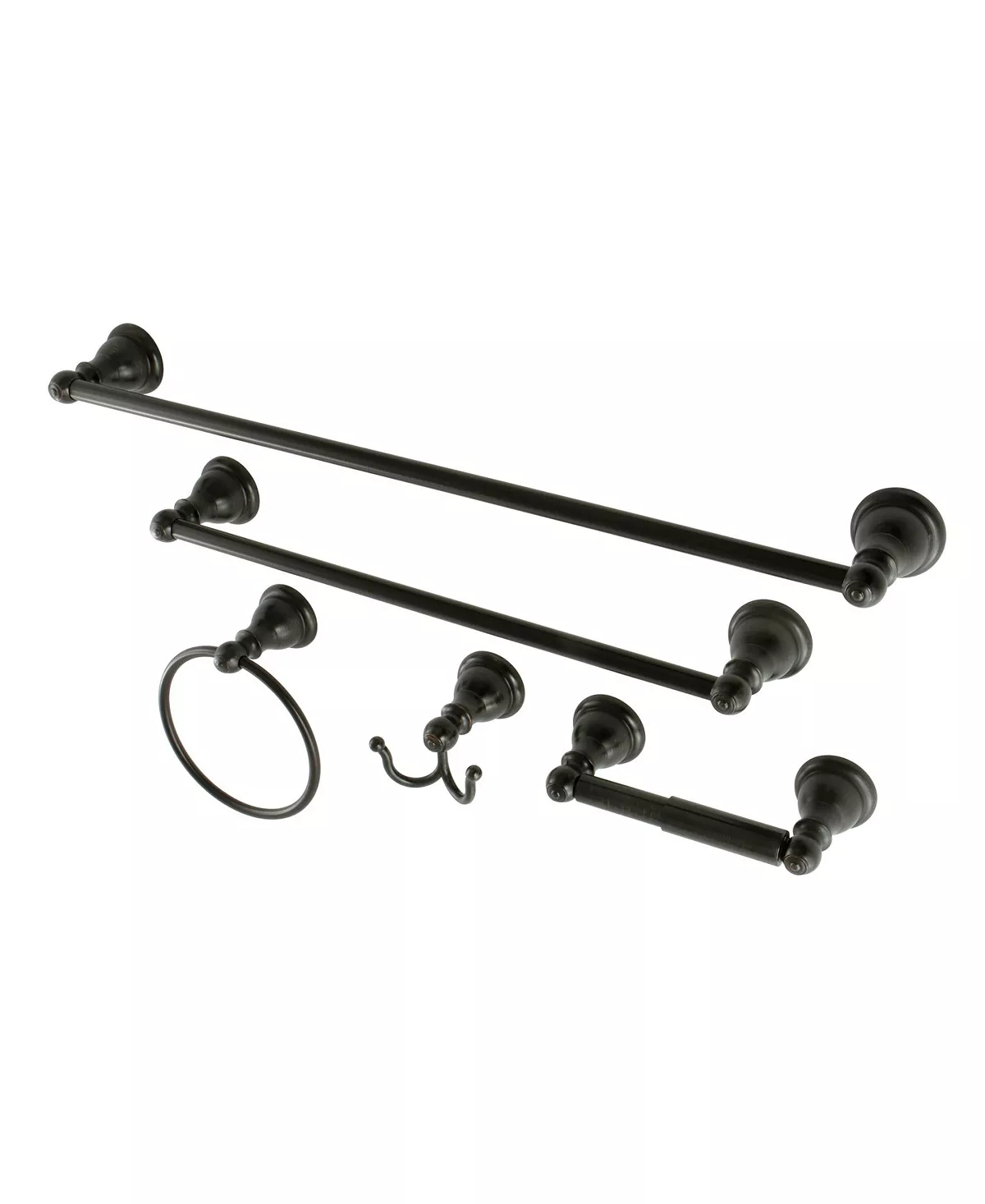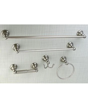 This all inclusive set of bathroom accessories features intricate detailing for a luxurious and astonishing style. Two towel bars, towel ring, robe hook, and a toilet paper holder are included for all of your hanging storage needs.