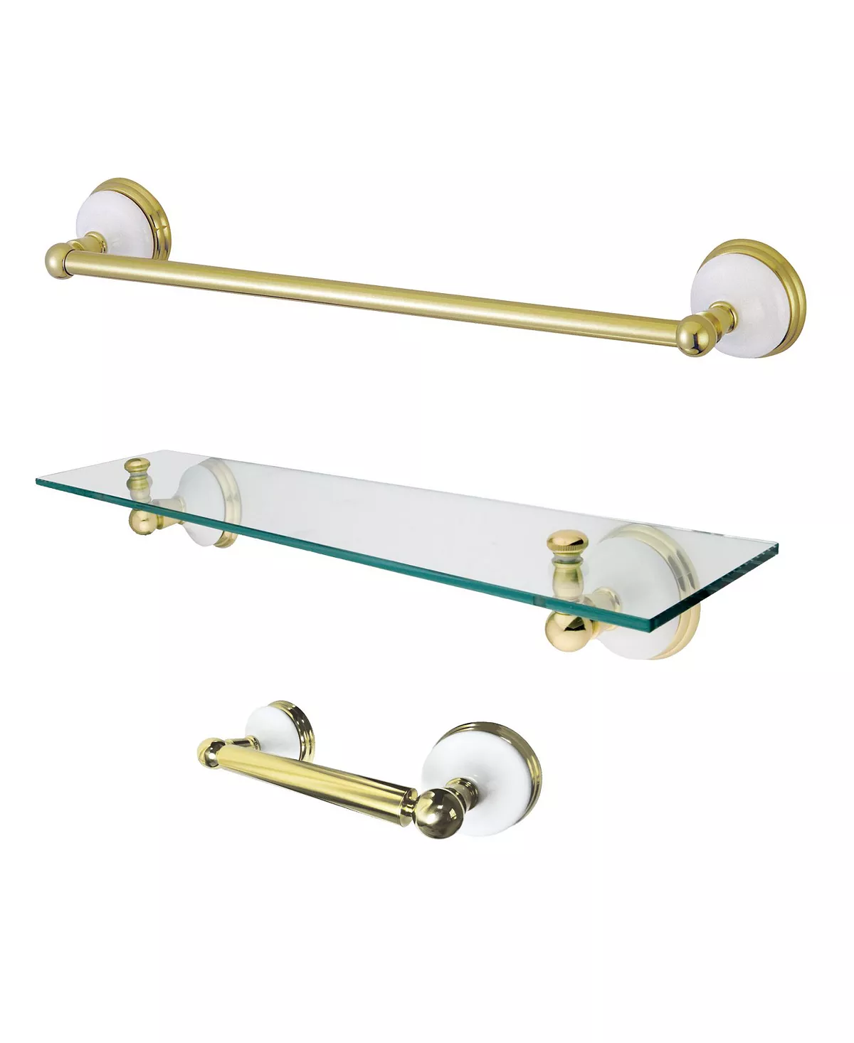 - 3 Piece Bathroom Accessory Kit Includes: 18″ Towel Bar, Toilet Paper Holder, and Glass Self
