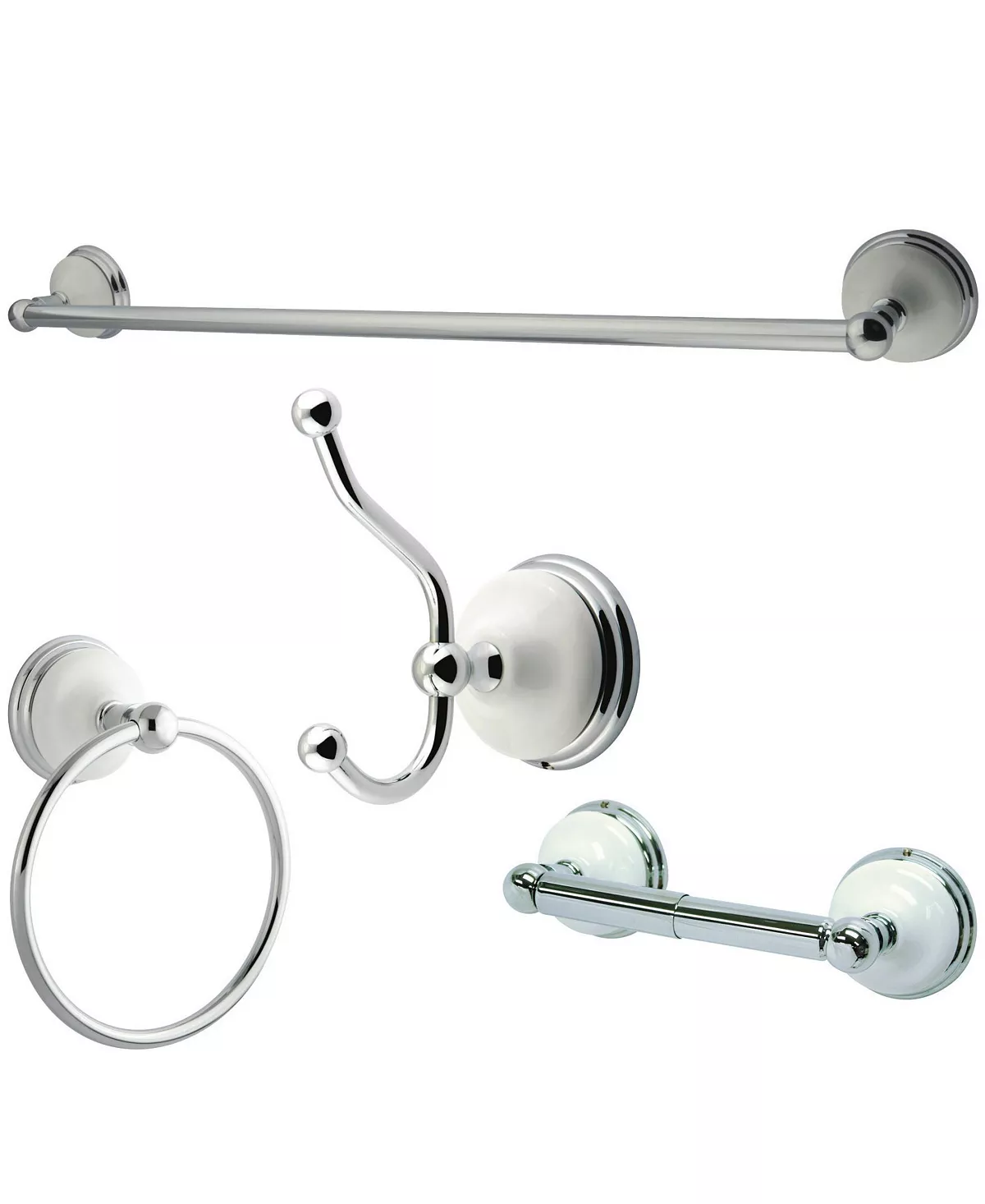 - 4 Piece Bathroom Accessory Kit Includes: 18″ Towel Bar, Towel Ring, Robe Hook and Toilet Paper Holder