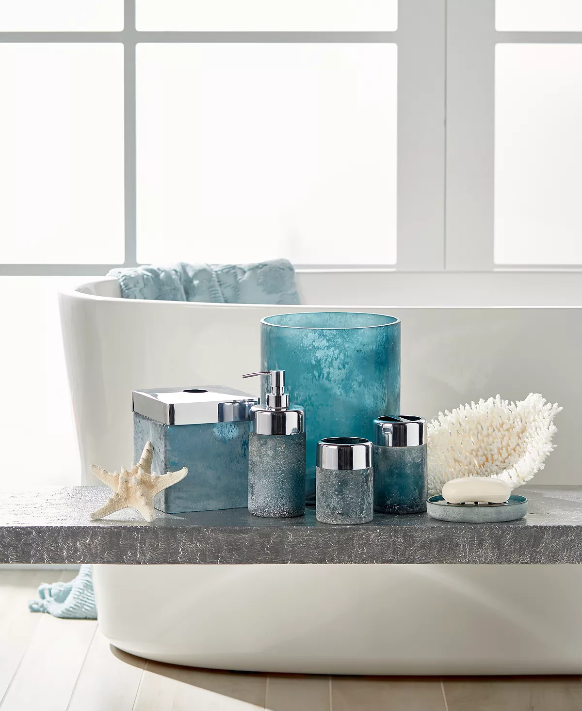 - Textured seaglass with stainless steel accents