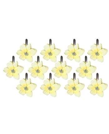 The 14pc Garrisson Bath set includes: a 72″ X 72″ yellow and grey floral shower curtain, 12 shaped floral bath hooks, & a 17″ X 24″ noodle rug. This set will complete and elevate any look to your bathroom. Shower curtain is 100% polyester & machine washable. The Noodle rug is also machine washable for easy care.